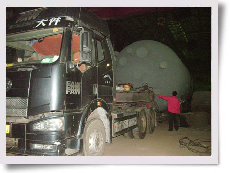 圖為長18.7米、直徑為φ4.35米的煤粉給料倉的發(fā)車現(xiàn)場。(王慧卉)