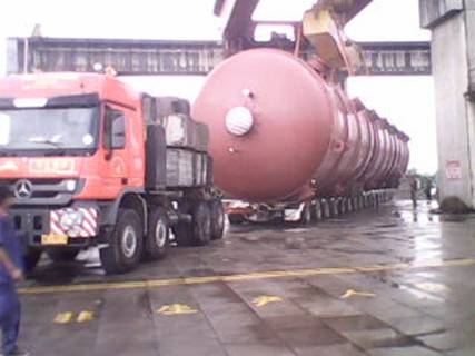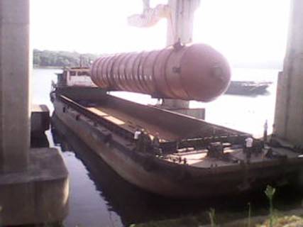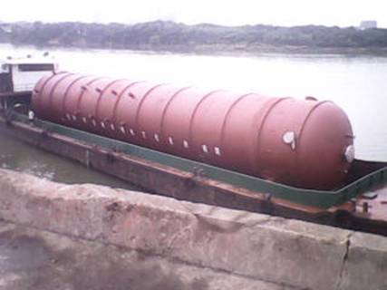 2012716日,在湖南衡陽白沙洲千噸級碼頭,由我公司制造完工的上海金山石化項目丙烯塔順利發(fā)貨。該設(shè)備共兩臺,每臺總長度為65000mm,直徑為5500mm,重量為566噸。